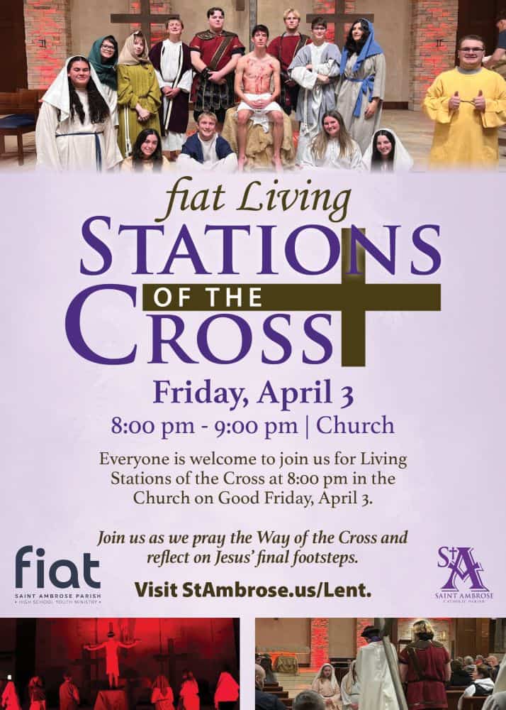Everyone is welcome to join us for Living Stations of the Cross at 8pm in the Church on Good Friday, April 3rd. Join us as we pray the Way of the Cross and reflect on Jesus’ final footsteps.