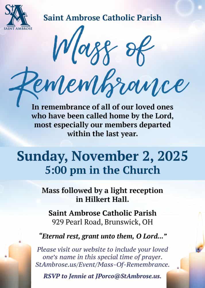 Mass of Remembrance will be on November 2, 2025 together with the 5:00pm Sunday Mass.