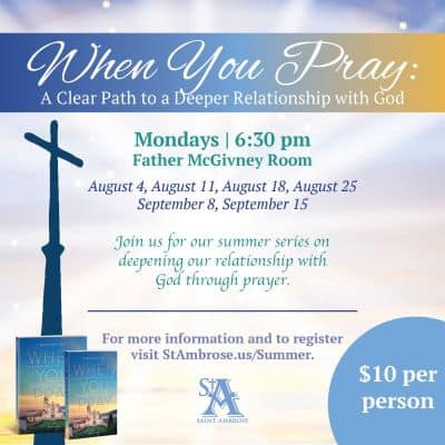 Join us for our summer series on deepening our relationship with God through prayer. This seven-week series from Ascension Press will include a book, video, and discussion as we delve into Cultivate a Rich and Lasting Prayer Life.