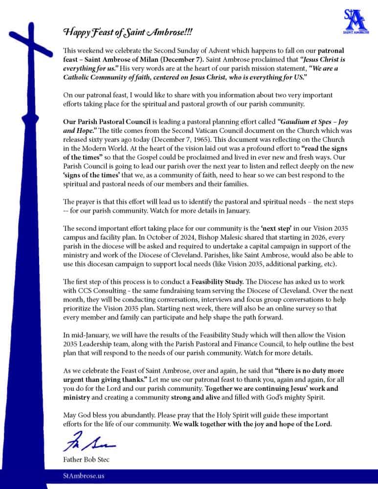 Our Parish Pastoral Council is leading a pastoral planning effort called “Gaudium et Spes – Joy and Hope.” The title comes from the Second Vatican Council document on the Church which was released sixty years ago today (December 7, 1965). This document was reflecting on the Church in the Modern World. At the heart of the vision laid out was a profound effort to “read the signs of the times” so that the Gospel could be proclaimed and lived in ever new and fresh ways.