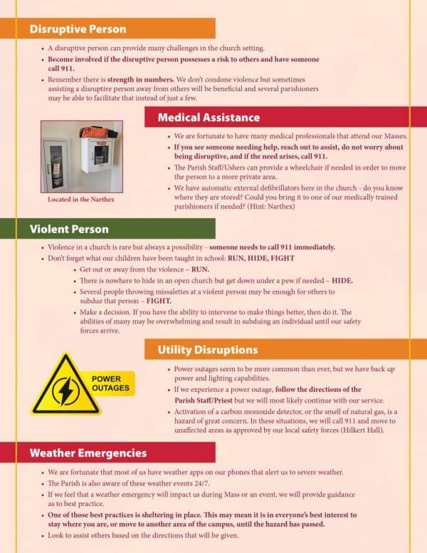 - Our parish is equipped with AED machines in the narthex, gym, school and Lehner Center. Next time in your in these buildings, take a minute to identify their location. It’s one more way to help take care of all of our members.