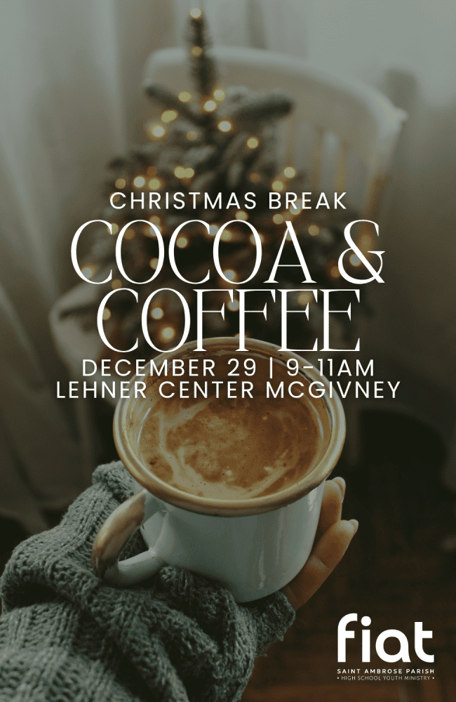 Time for our next girls day - Christmas break edition! All high school girls are invited to join us for a coffee & cocoa bar and time to hang out and enjoy all your favorite Christmas things. Bring a friend, bring your cheer, and join us! https://stambrose.us/wp-content/uploads/2025/10/12.29-girls-night.png
