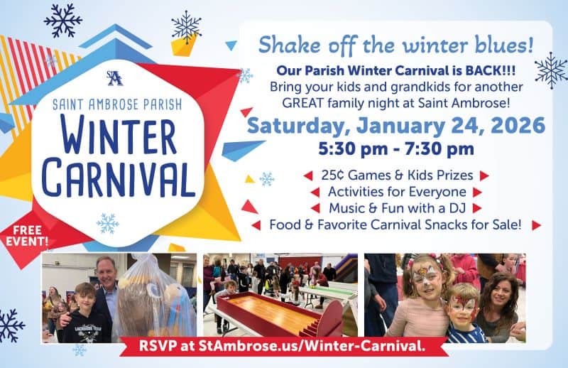Saint Ambrose Volunteer Appreciation Gathering Saturday, January 31 4:30 pm Mass 5:30 pm Dinner & Music featuring Motown Gold All parish volunteers are invited to join us for a wonderful evening of food, music and fellowship as we celebrate the wonderful work we do as a parish community. Please RSVP using the form by January [...] |
